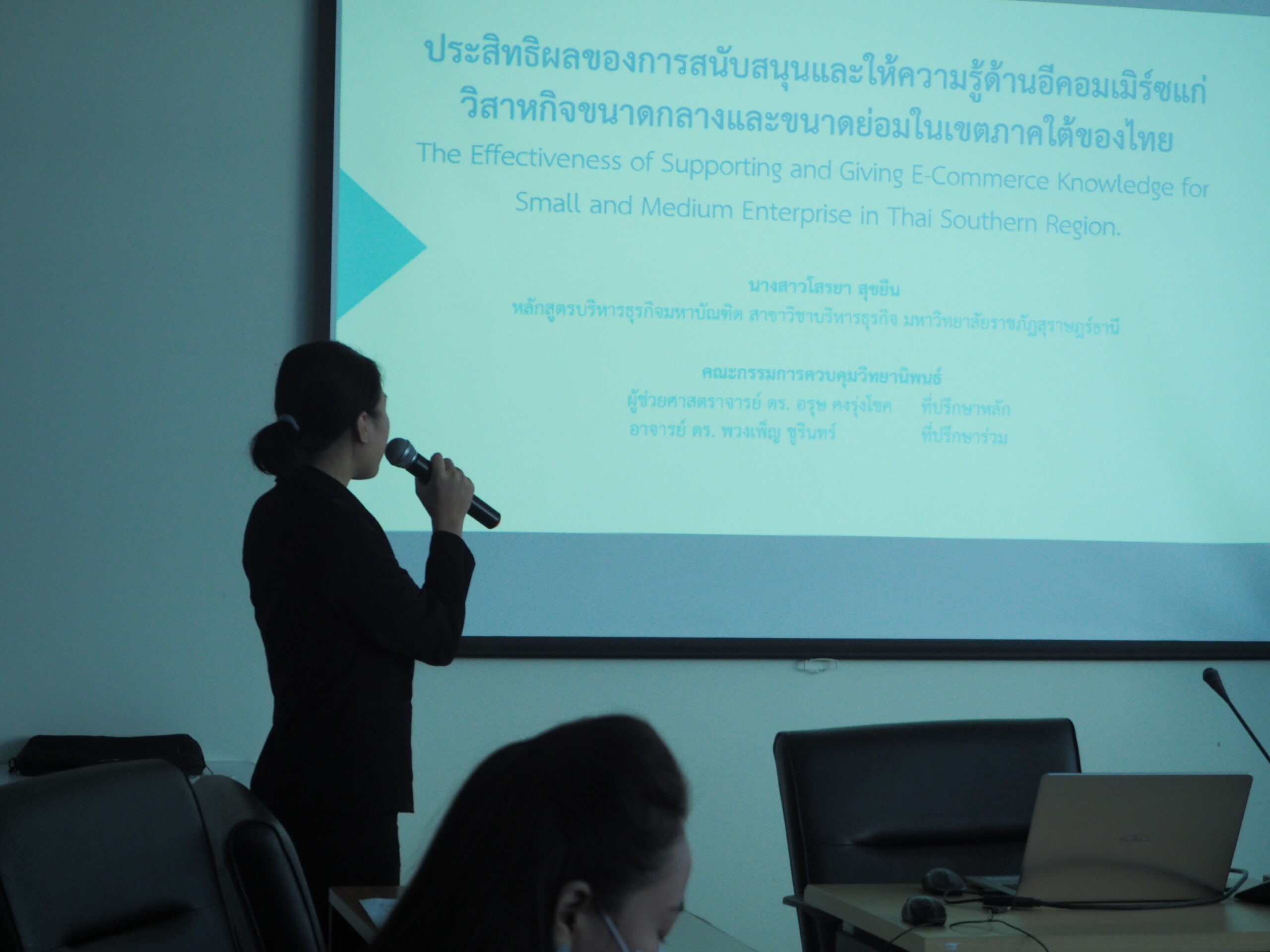 วันนี้ (23 มีนาคม 2563) บัณฑิตวิทยาลัยได้จัดให้การสอบปากเปล่าวิทยานิพนธ์และเค้าโครงวิทยานิพนธ์ นักศึกษาในระดับปริญญาโท หลักสูตรบริหารธุรกิจมหาบัณฑิต สาขาวิชาบริหารธุรกิจ มหาวิทยาลัยราชภัฏสุราษฎร์ธานี ณ ห้องประชุม 1 ชั้น 4 อาคารเฉลิมพระเกียรติ 80 พรรษา ซึ่งคณะกรรมการสอบซักถามและลงมติตัดสินผลการสอบของนักศึกษาในครั้งนี้เป็นไปได้ด้วยและราบรื่น ขอแสดงยินดีกับความสำเร็จและชื่นชมความอุตสาหะวิริยะของทุกคน และขอขอบพระคุณอย่างยิ่งสำหรับ ดร.มัทนชัย สุทธิพันธุ์ จากมหาวิทยาลัยสงขลานครินทร์ ที่ได้กรุณามาเป็นผู้ทรงคุณวุฒิในการสอบในครั้งนี้ด้วย