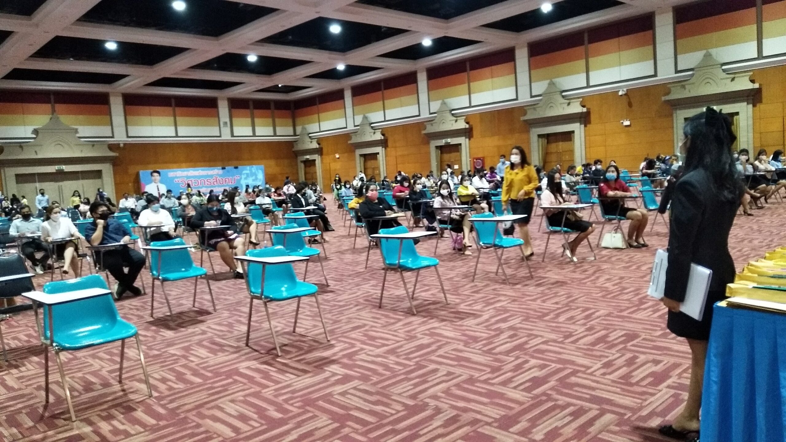 วันนี้(20 มิถุนายน 2563) ที่หอประชุมวชิราลงกรณ มหาวิทยาลัยราชภัฏสุราษฎร์ธานี (มรส.) บัณฑิตวิทยาลัย มรส.จัดสอบคัดเลือกเข้าศึกษาหลักสูตรประกาศนียบัตรบัณฑิตวิชาชีพครู โดยมหาวิทยาลัยราชภัฏสุราษฎร์ธานี จัดตั้ง “จุดคัดกรอง” เพื่อคัดกรองผู้เข้าสอบที่อาจจะอยู่ในกลุ่มเสี่ยงอาการเริ่มต้นของ covid-19 โดยมีมาตรการเฝ้าระวังการระบาดของเชื้อไวรัส โคโรนาสายพันธุ์ใหม่ 2019(COVID-19)
