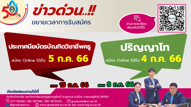 บัณฑิตวิทยาลัย มหาวิทยาลัยราชภัฏสุราษฎร์ธานี ประกาศ เรื่อง การสอบประมวลความรู้ นักศึกษาระดับบัณฑิตศึกษา ประจำภาคการศึกษาที่ 3/2565