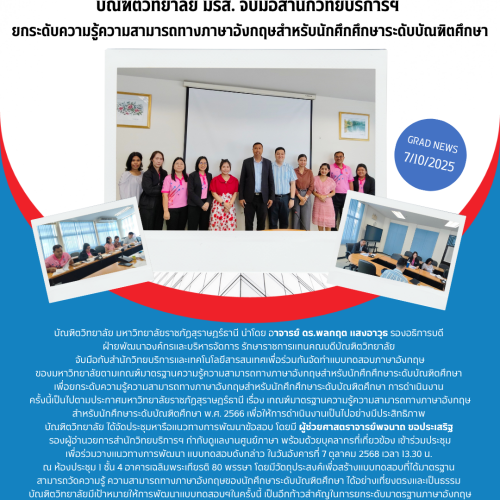 เมื่อวันอังคารที่ 7 ตุลาคม 2568 เวลา 14.30 น. บัณฑิตวิทยาลัย มหาวิทยาลัยราชภัฏสุราษฎร์ธานี (มรส.)