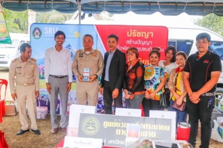 ผศ.สมชาย บุญคงมาก อาจารย์คณะนิติศาสตร์มหาวิทยาลัยราชภัฏสุราษฎร์ธานี กล่าวว่า มหาวิทยาลัยราชภัฏสุราษฎร์ธานีได้เข้าร่วมโครงการจังหวัดเคลื่อนที่ “บำบัดทุกข์ บำรุงสุข สร้างรอยยิ้มให้ประชาชน” ณ โรงเรียนทุ่งนางเภา ต.โมถ่าย อ.ไชยา จ.สุราษฎร์ธานี โดยมีตัวแทนจากหลายส่วนราชการเข้าร่วมด้วย วันนี้พวกเรามีทีมงานจากคณะนิติศาสตร์ ไปตั้งคลินิกกฎหมายให้บริการประชาชน ซึ่งมีประชาชนที่ประสบปัญหาเกี่ยวกับกฎหมายโดยเฉพาะเรื่องที่ดินทำกิน ได้เข้ามาซักถาม และให้คำแนะนำแนวทางการแก้ไขปัญหา พร้อมด้วยศูนย์ศึกษาและประสานงานด้านสิทธิมนุษยชนภาคใต้ คณะกรรมการสิทธิมนุษยชนแห่งชาติ มาให้บริการกับประชาชนและประชาสัมพันธ์ข้อมูลฯ และทีมงานจากบัณฑิตวิทยาลัย มาค่อยให้ คำปรึกษาเกี่ยวกับเรียนระดับปริญญาโทในสาขาต่างๆ และทีมงานจากหอสมุดและศูนย์สารสนเทศเฉลิมพระเกียรติ บริการหนังสือ AR book ให้กับน้องนักเรียน นอกจากนี้ยังมีฝ่ายสื่อสารองค์กรที่ไปให้ประชาสัมพันธ์เกี่ยวกับมหาวิทยาลัยของเรา ทั้ง 5 ส่วน ได้รับเสียงตอบรับจากพี่น้องประชาชนเป็นอย่างดี จากนี้เราจะออกงานลักษณะนี้ร่วมกับจังหวัดบ่อยครั้งขึ้น เรียกง่ายๆว่า เห็นจังหวัดเคลื่อนที่ไปที่ใด ก็จะเห็นราชภัฏสุราษฎร์ฯที่นั่นแน่นอน เพราะเราจะร่วมกันทำให้ความหมายของ “มหาวิทยาลัยแห่งการรับใช้ชุมชนท้องถิ่น” จับต้องได้อย่างเป็นรูปธรรมยิ่งขึ้น