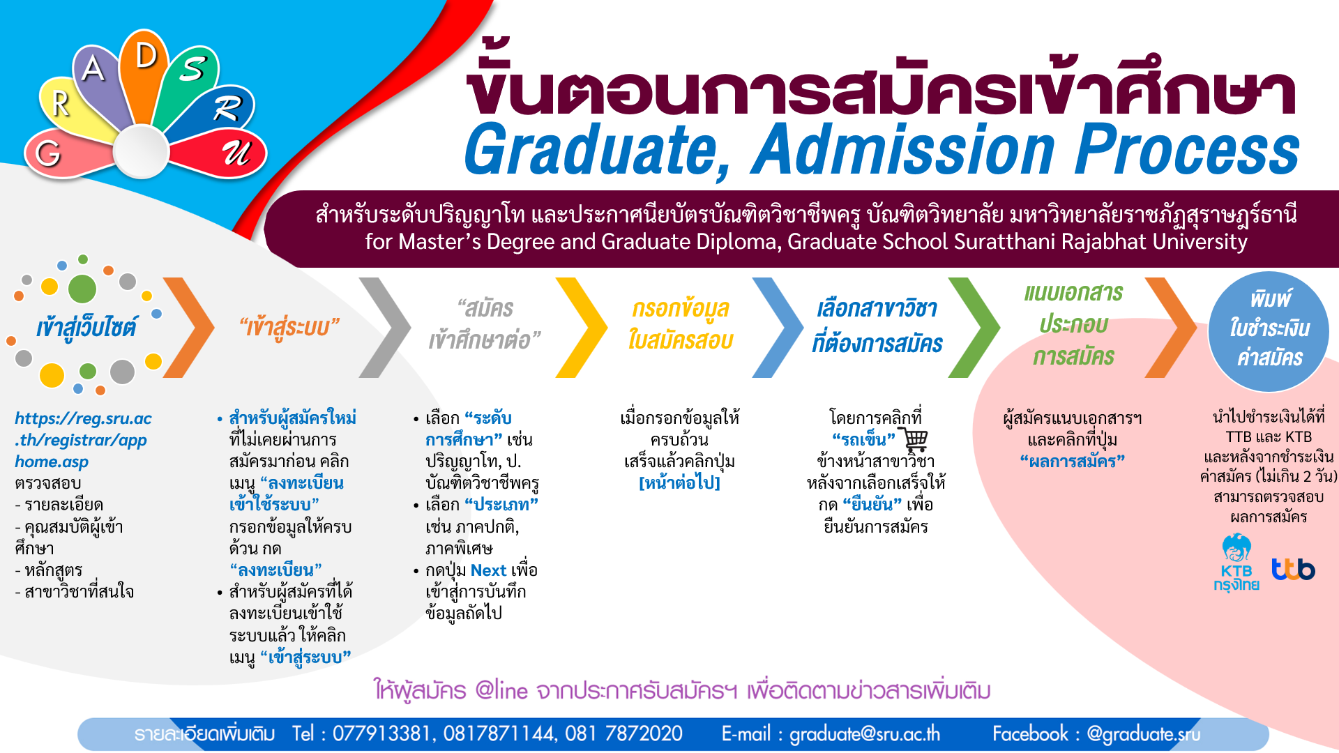 - มีคุณสมบัติอื่นให้เป็นไปตามข้อบังคับมหาวิทยาลัยราชภัฏสุราษฎร์ธานี ว่าด้วยการจัดการศึกษาในระดับบัณฑิตศึกษา พ.ศ. 2550